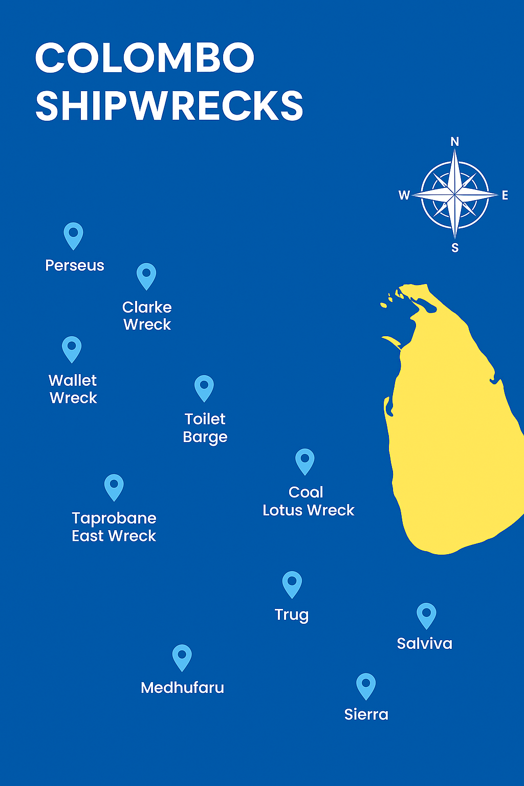 The Medhufaru Shipwreck is one of Colombo’s most popular and visually stunning dive sites, located approximately 6.26 kilometers offshore and accessible by boat in around 15 minutes. Resting upright at a maximum depth of 28 meters, this wreck is ideal for Advanced Open Water Divers and is suitable for Nitrox (Nx 32). Known for its photogenic structure and rich marine life, it’s a favorite among underwater photographers and videographers. The site offers exciting opportunities for wreck exploration and penetration, with advanced divers able to navigate the staircase and wheelhouse areas.